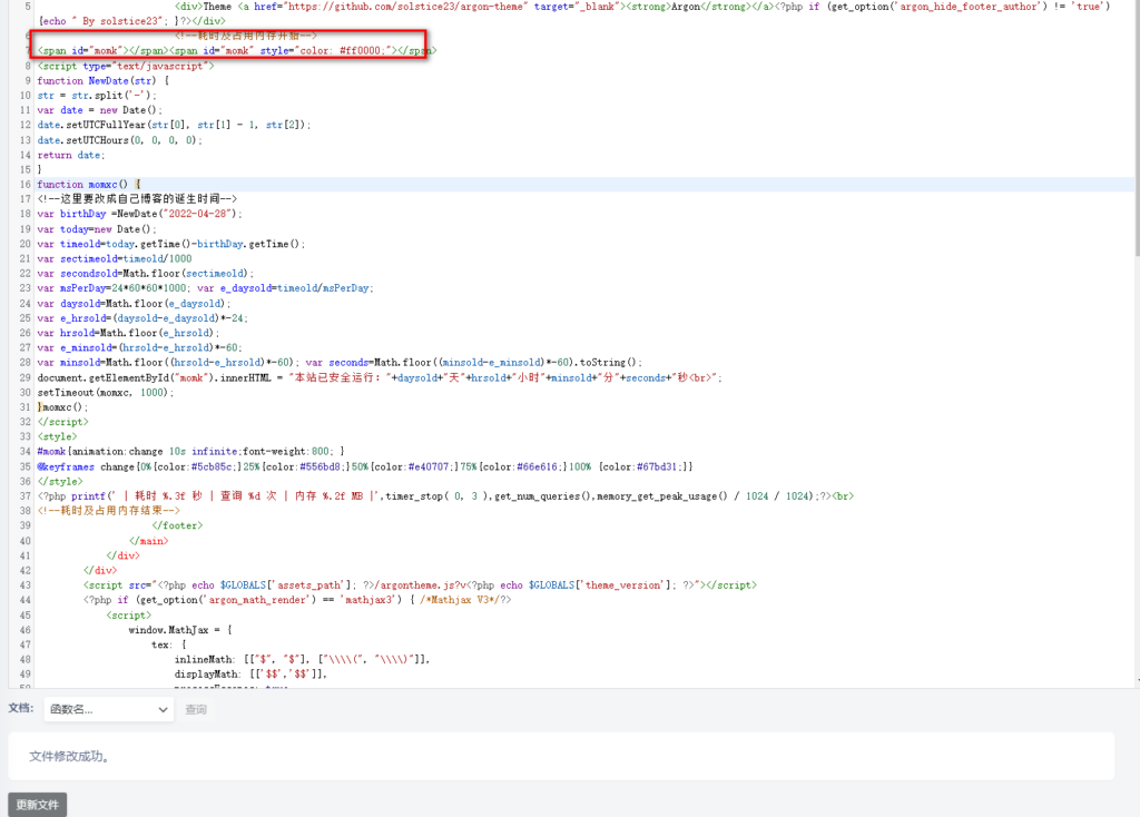 在</footer>之前插入以下代码。在var birthDay =NewDate("2022-04-28");这里,你修改成你自己的时间即可。应该没有强迫症纠结为什么不可以设置时分秒的吧!