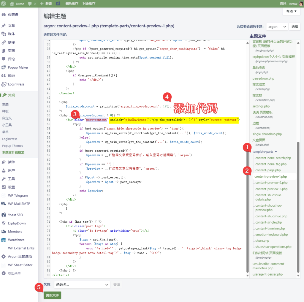 主要参考:https://wangwangyz.site/archives/835。首先,在主题文件编辑器里修改post-content对象后面添加一行代码onclick="pjaxNavigate('<?php the_permalink(); ?>')" style="cursor: pointer":
